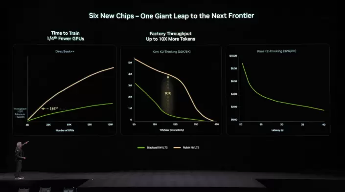 凭借这些技术进步,相比Blackwell GB200平台,英伟达Rubin平台将推理token成本降低10倍,训练MoE模型所需GPU数量减少4倍。Rubin生态系统已获得众多合作伙伴支持并实现全面量产,首批芯片将于今年晚些时候交付客户。