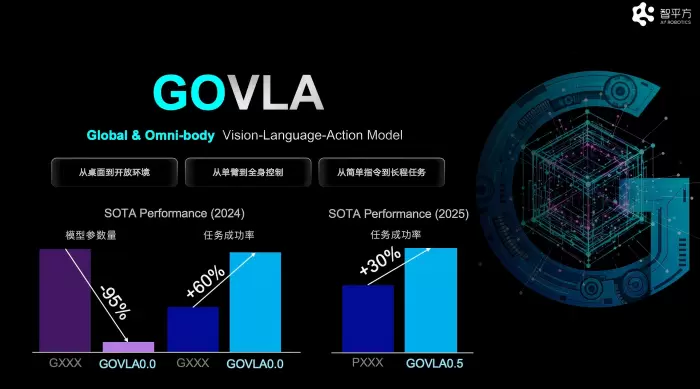 智平方成立于2023年,是全球领先的通用智能机器人企业,专注于以统一机器人形态搭载具身大模型,实现跨场景的任务学习、迁移与执行。在技术层面,智平方是国内最早系统性研发端到端VLA具身大模型的企业,自研的全域全身具身大模型GOVLA,实现了从感知、理解到全身动作控制的一体化能力,相关成果已在国际顶级会议发表并开源,性能较国际标杆π0提升30%。